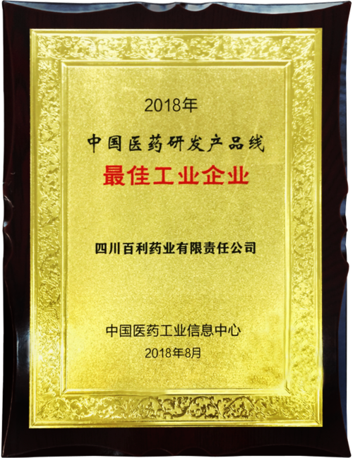 • 2018年 国家工信部中国医药工业信息中心
